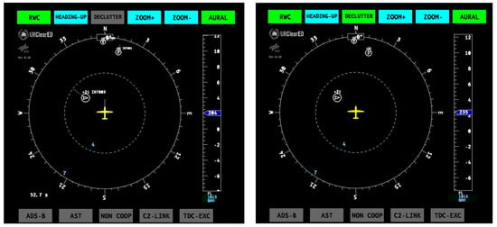 - Williams, K.W.; Caddigan, E.; Zingale, E. An Investigation of Minimum Information Requirements for an Unmanned Aircraft System Detect and Avoid Traffic Display; FAA: Washington, DC, USA, 2017; Technical Report DOT/FAA/AM-17/14.