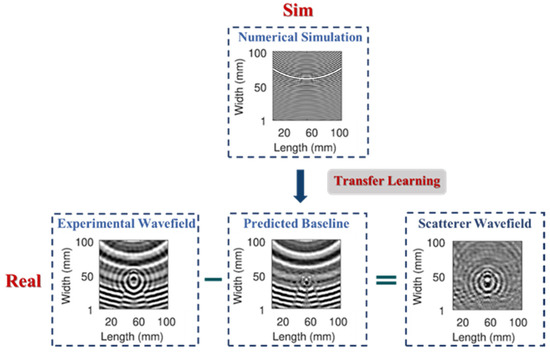 - Alguri, K.S.; Chia, C.C.; Harley, J.B. Sim-to-Real: Employing ultrasonic guided wave digital surrogates and transfer learning for damage visualization. Ultrasonics 2021, 111, 106338. [Google Scholar] [CrossRef]