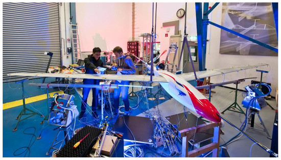 The wings were manufactured using CFRP prepregs cured in an autoclave and were instrumented with various systems, including FBGs to measure strains and, through them, to extract deformation and loads. An extensive ground test campaign was performed including static tests for stiffness updating and a ground vibration test to update the aeroservoelastic model.