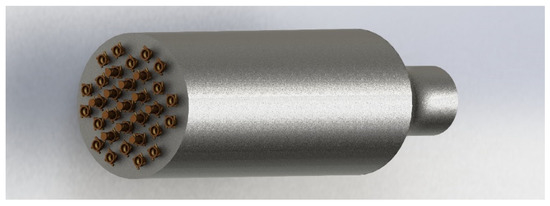 The combustion chamber structure studied in this paper is shown in Figure 1, which mainly includes a cylindrical combustion chamber and a nozzle. The injection panel consists of 13 coaxial swirling injectors and 18 single-component fuel swirling injectors. The locations of the coaxial swirling injectors are as follows: 7 large flow rate injectors in the central zone and 6 small flow rate injectors in the outer ring.