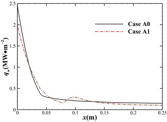 3.2. Surface Heat Flux Distribution Considering Chemical Nonequilibrium Effect