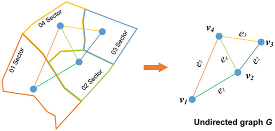 - Adjacency matrixThe Shanghai control area contains 30 sectors. The adjacency matrix was constructed based on whether there was a route connection between the sectors. If there was a route connection between sector and sector , ; otherwise, . The adjacency matrix was obtained through statistics.