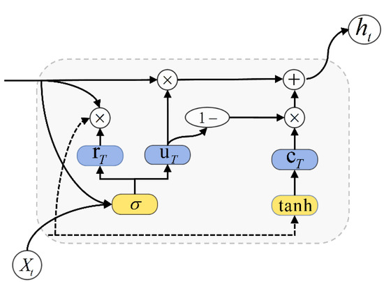 - The range of the number of GRU units is generally chosen as an exponent of 2. The range of the number of GRU units was set to (8, 16, 32, 64, 100, 128) in the experiments of this study. The experimental effects of different numbers of GRU units were tested by fixing the number of model training epochs to 500 and the training step size to 16, as shown in Figure 7b. The experimental results revealed that the model training effect tended to be stable when the number of GRU units was 100; thus, the number of model training GRU units was set to 100.