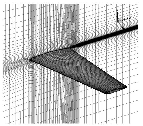 To test the 3D prediction ability of the model, we conduct a calculation over the transonic ONERA M6 3D airfoil. It is a calibrate case of transition verification. Calculation proceeds with the mesh, as in Figure 20. It is a H-type topology, including 250,000 cells in total. Mach number is set to 0.8395, Reynolds number is set to 11.72 × 10, and the angle of attack is .