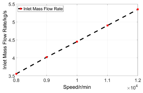 The inlet cooling air flow is set as 25 °C, with the inlet mass flow rate calculated by the aerodynamic design of the ducted fan, which is shown in Figure 11.