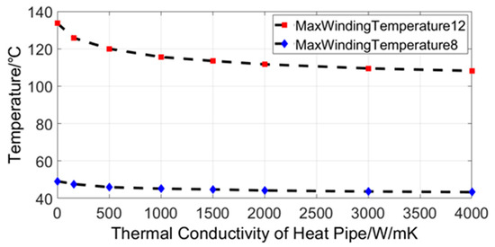 Maximum Winding Temperature under Different Thermal Conductivities of the Heat Pipe.
