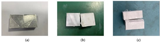 The test matrix elements include test items, test equipment, test implementation method and test operation process. Among them, the test items are divided into two categories according to the substrate materials of the test items, namely, aluminum alloy–ice–aluminum alloy static test (test of AL-Ice-AL) and aluminum alloy–ice–silicone rubber static test (test of AL-Ice-SR). The preparation, icing, insulation and tensile shear failure of specimens are conducted according to the test items. The test piece information is shown in Table 2, and the test breakdown item matrix is shown in Table 3.