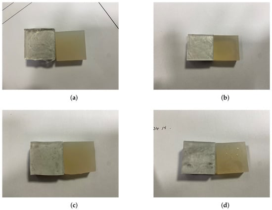 Taking the test condition of distilled water freezing for 2 h at −25 C as an example, the shedding of the adhesion surface of the specimen is caused by the combination of vertical shear force and additional bending moment.