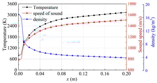 Mean flow properties along the axis of the BKD combustion chamber obtained by the RANS simulation.