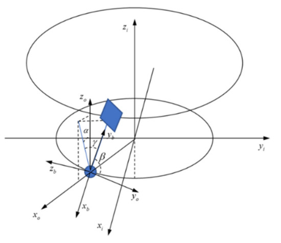 Spacecraft body coordinate system : The origin is coincident with the main satellite and the directions of the axes are shown in Figure 2. The coordinate transformation relationship between and is defined as follows: