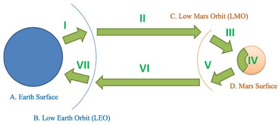 - Salotti, J.M.; Heidmann, R. Roadmap to a human Mars mission. Acta Astronaut. 2014, 104, 558–564. [Google Scholar] [CrossRef]