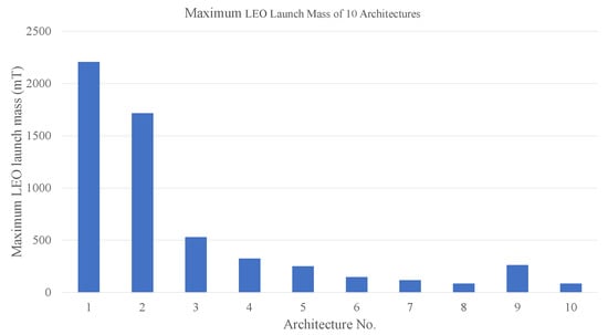 - Bounova, G.; Ahn, J.; Hofstetter, W.; Wooster, P.; Hassan, R.; de Weck, O. Selection and technology evaluation of moon/mars transportation architectures. In Space 2005; American Institute of Aeronautics and Astronautics: Commonwealth of Virginia, USA, 2005; p. 6790. [Google Scholar]