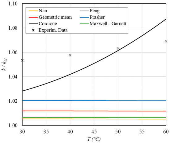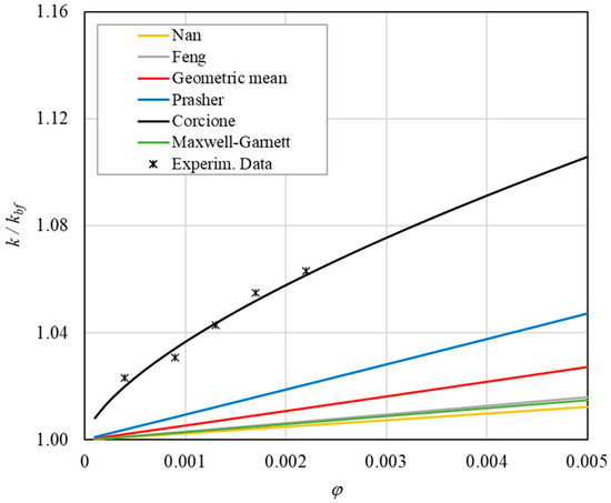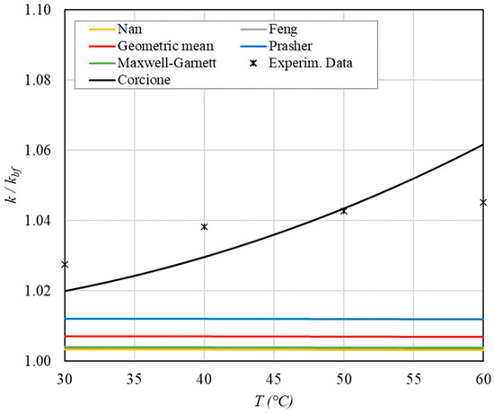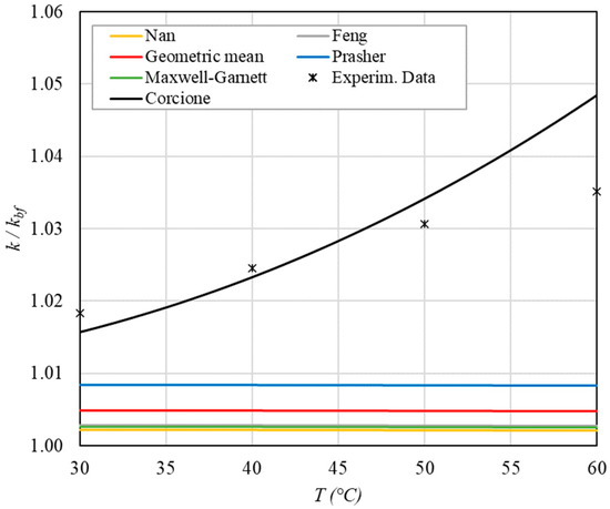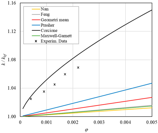 In Ref. [13], the authors show that the volumetric concentration of nanoparticles affects the thermal conductivity of nanofluids, and they also claim that thermal conductivity predictions are more accurate when a non-zero Kapitza resistance is considered (typically Rbd = 10−8 m2 K·W−1).