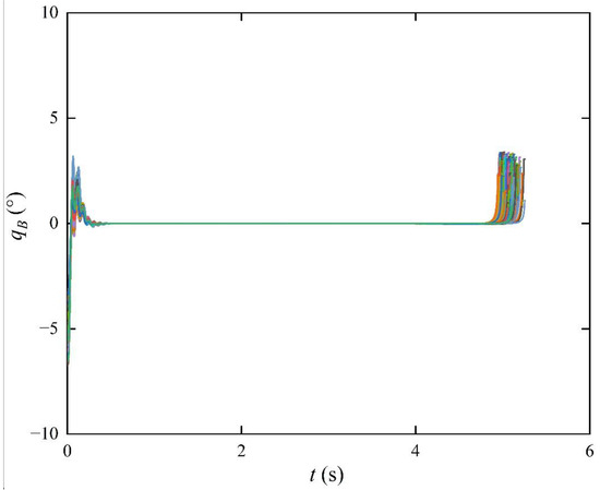 The design parameters of the proposed controller (BLF-SMC-BC) are , , , , and . The first-order filter parameters are , , , and . The reduced-order ESO parameters are , , , and . The desired FOV angle is assumed to be .