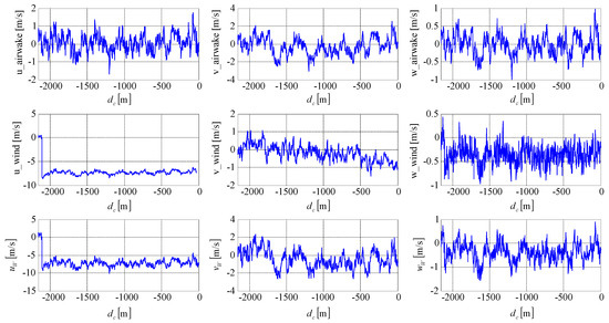 Considering both the airwake and the wind disturbances, we define the components of the resultant disturbance: index j is 1, 2, 3, 4 for airwake and 5, 6, 7 for the other three wind type disturbances.