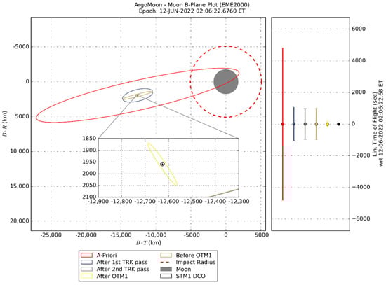 B-Plane uncertainties (3-sigma) for the fly-by M3 with DCO at the end of each tracking (TRK) pass up to the DCO of the STM19 (last maneuver before the fly-by). “A-priori” refers to the results obtained propagating the expected ephemeris uncertainty at the end of the previous arc (REV7).