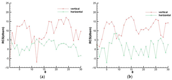 RCS in the vertical direction. (a) Horizontal polarization (b) Vertical polarization.