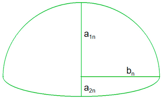 The first step of optimization design is to determine the parameters of the optimization scheme, including model parameters, objective functions, and constraints. There are three kinds of parameters to be defined to build an accurate S-duct intake model, including the center line function of the diffuser, the shapes of the diffuser sections, and the center deviation distance of the outlet. The shapes of the middle sections can be enclosed by two semi-elliptic curves of different short axis lengths, as shown in Figure 10. The area of any section can be calculated by Equation (1).