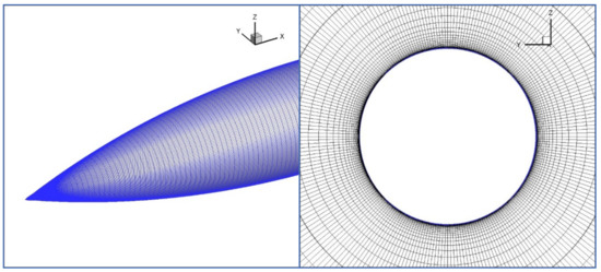m = 8 have normally been used in the grid generation process. Additionally –in order to reduce the roughness at the nose tip- a mesh with