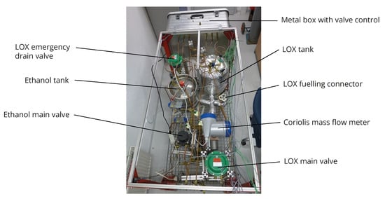 Nitrogen is used to pressurise and convey the propellants from the tanks to the thrust chamber as well as to flush nitrogen into the thrust chamber. The rig additionally houses solenoid control valves, pressure reducers as well as a data acquisition and test bench control system. All the sensor signals are collected in a metallic control box, which acts as an interface between the operator and test stand. The metallic housing forms a barrier among the electrical lines and fluid lines, thereby minimizing the risk of fires and explosion. In the event of a power failure, all valves will be closed automatically.