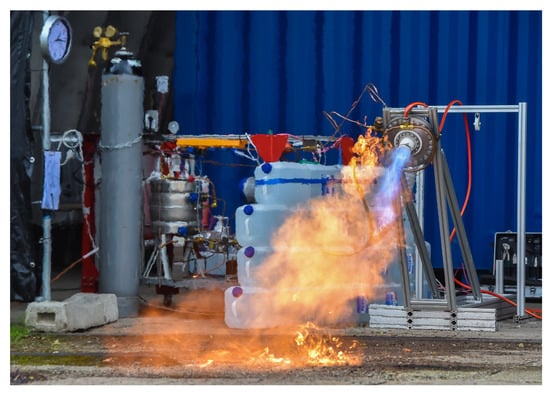 - Sieder, J.; Kleebusch, K.; Bach, C.; Tajmar, M. Development History and Verification of the Flight Model of a 500 N Ethanol/LOX Rocket Engine. In Proceedings of the 7th European Conference for Aeronautics and Space Sciences, Milan, Italy, 3–6 July 2017. [Google Scholar]