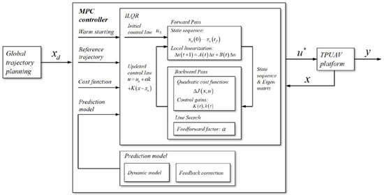 The remainder of this manuscript is organized as follows. Firstly, an introduction to tilt-propulsion UAV is presented. The dynamics model of TPUAV is developed, where emphasis is placed on the modeling of the ducted propeller. Section 3 introduces the proposed method in detail, including the global trajectory plan approach and the MPC based on ILQR. Afterwards, the results of the simulation work are shown. Lastly, Section 5 concludes the full manuscript.