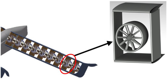 There is a prominent feature that the wings of the DEP eVTOL aircraft can be regarded as spanwise combinations of several DFW units, that is, ducted fans with the surrounding wing sections. Therefore, the spanwise periodic lift, drag, and thrust performance cycles largely determine the aerodynamics and propulsion performance of the aircraft. Consequently, a single DFW unit is taken as the research object, to represent the basic lift-propulsion element (LPE) of the DEP eVTOL aircraft. The typical composition of the DFW unit is shown in Figure 1.