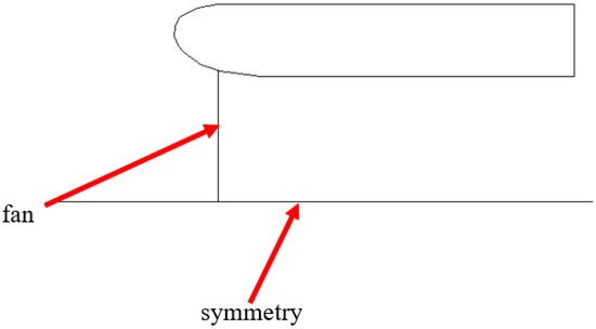 In this consideration, for the sensitivity analysis on duct lip shape, the virtual disc with momentum sources is adopted to simulate the suction effect of the fan disc. Based on the impact of the changing flow field with different shapes, the cross-sectional shape of the duct lip can be selected appropriately. Because of the central symmetry of the duct wall, two-dimensional (2D) CFD simulation is used to obtain the sensitivity analysis of the lip radius among the four popular lip shapes. The four cross-sectional shapes are presented in Figure 9, and the schematics of the 2D-ducted fan CFD model are shown in Figure 10.