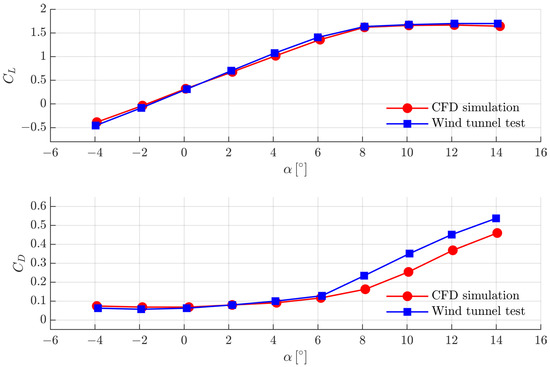 The total estimated lift-and-drag coefficients after the conceptual design are compared to the CFD simulation results, which involve the actual blade model. As shown in Figure 27, the difference between the estimation and CFD simulation results in the linear-lift AoA region (below 5 deg) is reasonably acceptable (the relative errors within 13%). Therefore, the lift-and-drag estimation from the LPE can strongly support the subsequent conceptual design process while ensuring much less calculation effort. In this study, the conceptual design, based on the LPE estimation, meets the design requirements quite well. As a result, additional design modifications in the detailed design phase can be exempt.