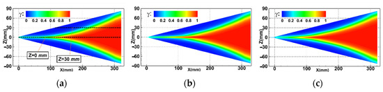 Distributions of γ. (a) L = 2 mm, (b) L = 6 mm, (c) L = 12 mm.