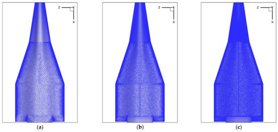 Grids for the grid convergence study. (a) Coarse grid; (b) Medium grid; (c) Fine grid.