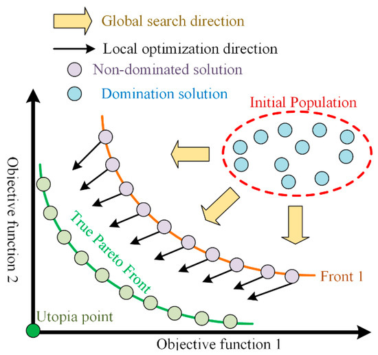 where is the crowding distance of the individual, is the number of fitness functions, and is the fitness function. The program goes on until the stoppage conditions are met to terminate the program.