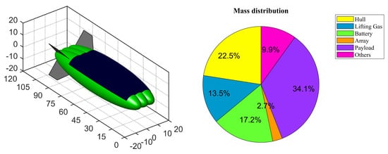 For the electric-powered airship, the total mass can be expressed as Equation (9):