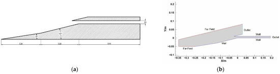 Inlet model. (a) Model size (unit: mm); (b) Computational domain.