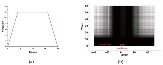 NS-SDBD verification example. (a) Pulse waveform; (b) Computational domain.