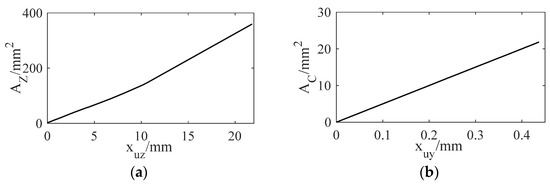 Additionally, the geometry relationship of the flow area and the underlap of the two orifices are shown in Figure 8a and Figure 8b, respectively.