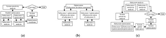 Figure 1. Frameworks of traditional multi-level MDO methods: (a) CSSO; (b) CO; (c) BLISS.