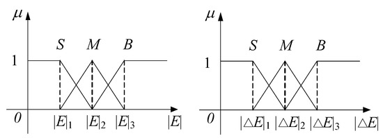 are the ratio coefficient, the differential coefficient, and the integral coefficient, respectively. k is a value between 0 and n. is the deviation and is the deviation change rate. The fuzzy adaptive PID controller design can be achieved according to the following five steps discussed in Section 4.1.1, Section 4.1.2, Section 4.1.3, Section 4.1.4 and Section 4.1.5 below.