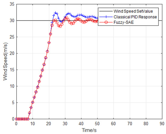 The measured data can also prove the above conclusion. Compared with the classic PID algorithm, the fuzzy-SAE algorithm has a better dynamic response curve for the wind speed measured in the D-4 wind tunnel of Beihang University.