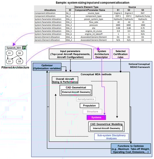 - Jeyaraj, A.K.; Tabesh, N.; Liscouët-Hanke, S.; Liscouet-Hanke, S. Connecting Model-based Systems Engineering and Multidisciplinary Design Analysis and Optimization for Aircraft Systems Architecting. In Proceedings of the AIAA AVIATION 2021 FORUM, Virtual, 2–6 August 2021; American Institute of Aeronautics and Astronautics Inc., AIAA: Reston, VA, USA, 2021. Available online: https://arc.aiaa.org/doi/abs/10.2514/6.2021-3077 (accessed on 6 October 2022).