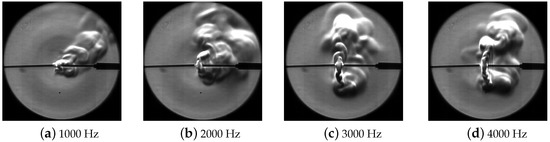 Some frames (images after 500 pulses) of schlieren videos are presented in Figure 6, which showed their thermal effects but did not provide any quantitative information. The little velocity perturbation of discharge plasma was simply observed visually in a chambre filled with somke, which could be ignored when compared with the flow velocity in Rijke tube. These two effects need to be measured with more accurate means, but this is not possible under our current experimental conditions.