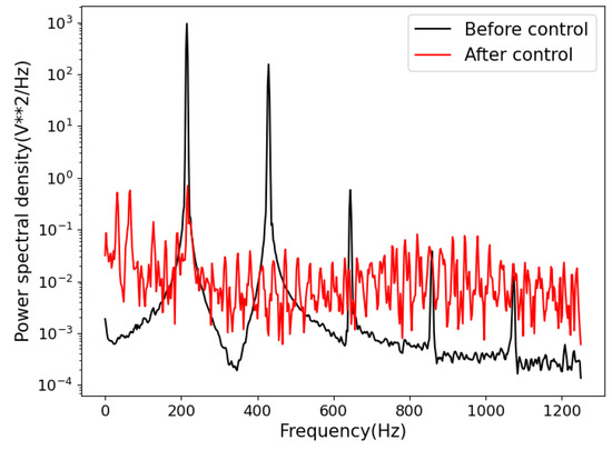 In order to know what happend to the thermoacoustic oscillations when plasma were applied, the pressure signals were analyzed further. FFT and power spectral density (PSD) analysis were firstly used to see their spectrum characteristics. From the FFT result in Figure 9 and the PSD result in Figure 10, it is clear that oscillations lost their defined frequencies, but chaos oscillations were without particular frequencies instead. From the result of short-time FFT analysis shown in Figure 11, the pressure field in the Rijke tube showed a strong nonlinearity during the discharge. It is thought that the chaos, the non-linearity, and the non-resonant oscillations introduced huge acoustic dissipation. Because of the higher dissipation of the high-harmonic oscillations and the nonlinear oscillations, the dissipation of sound energy was bigger than its gain, which decided that the amplitude of oscillation would decrease.