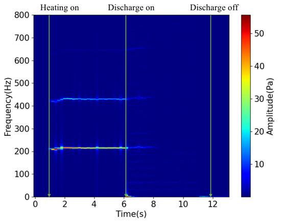 STFT results of the pressure signal in Figure 7e (5000 Hz discharge at 1.44 kW heating power).