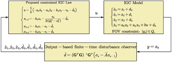 The schematic diagram of the proposed control scheme is provided in Figure 3. As shown in Figure 3, the presented approach achieves a control framework that covers the FOV requirement, partial measurement and unmatched uncertainties.