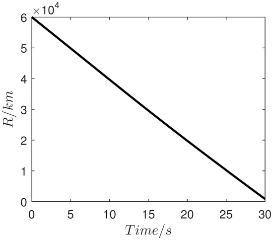 The initial conditions were set as km and km, and the location of the target was set as km and . The initial angles of the hypersonic flight vehicle were , . The missile and the target were set to fly with constant velocities of 6 Ma and 0 m/s, respectively. The aerodynamic coefficients were set as: