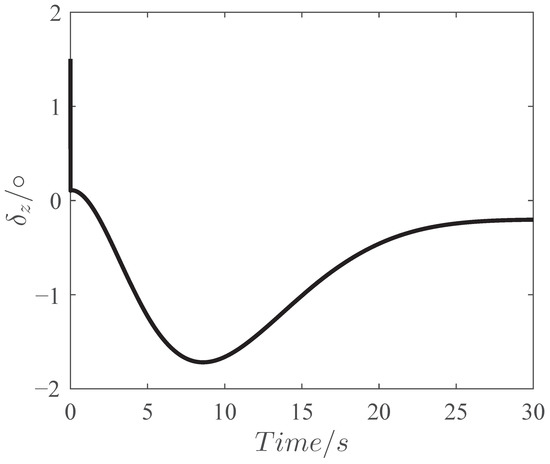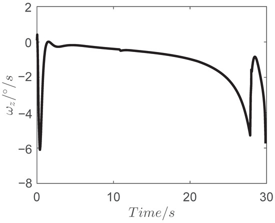 The control input was restricted as . The FOV constraint was set as . Parameters of the proposed control method were chosen as .