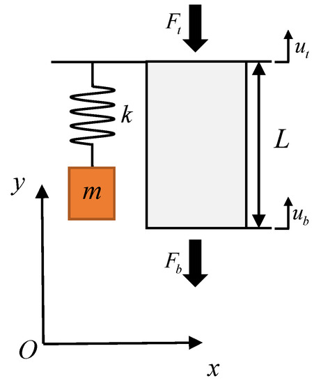 where and denote the density and cross-sectional area of the rod unit, respectively. is the Young’s modulus, and is the displacement along the x-direction. The solution of Equation (1) can be expressed as