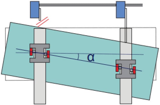 One of the implementation options for the skew control system for a separate wing mechanization section can be based on the use of inductive non-contact proximity sensors [,,,]. Such an organization of the SCS makes it possible to detect the occurrence of a slew of each section of the mechanization of the wing (flap or slat) by the position of two guides controlled by inductive proximity sensors. The use of non-contact sensors allows one to increase the resource of the system due to the absence of friction.
