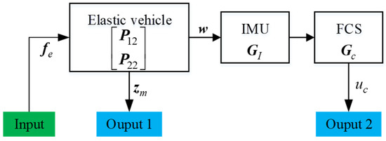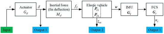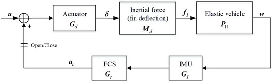 The transfer function matrix of IMU, FCS, and the actuator are denoted by , , and , respectively, with dimensions of , , and , respectively, where is the number of control channels, usually including roll, pitch, and yaw channels. The open-loop transfer function of the theoretical ASE system can be expressed as