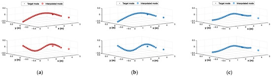 Comparison of target modes and interpolated modes. (a) and . (b) and . (c) and .